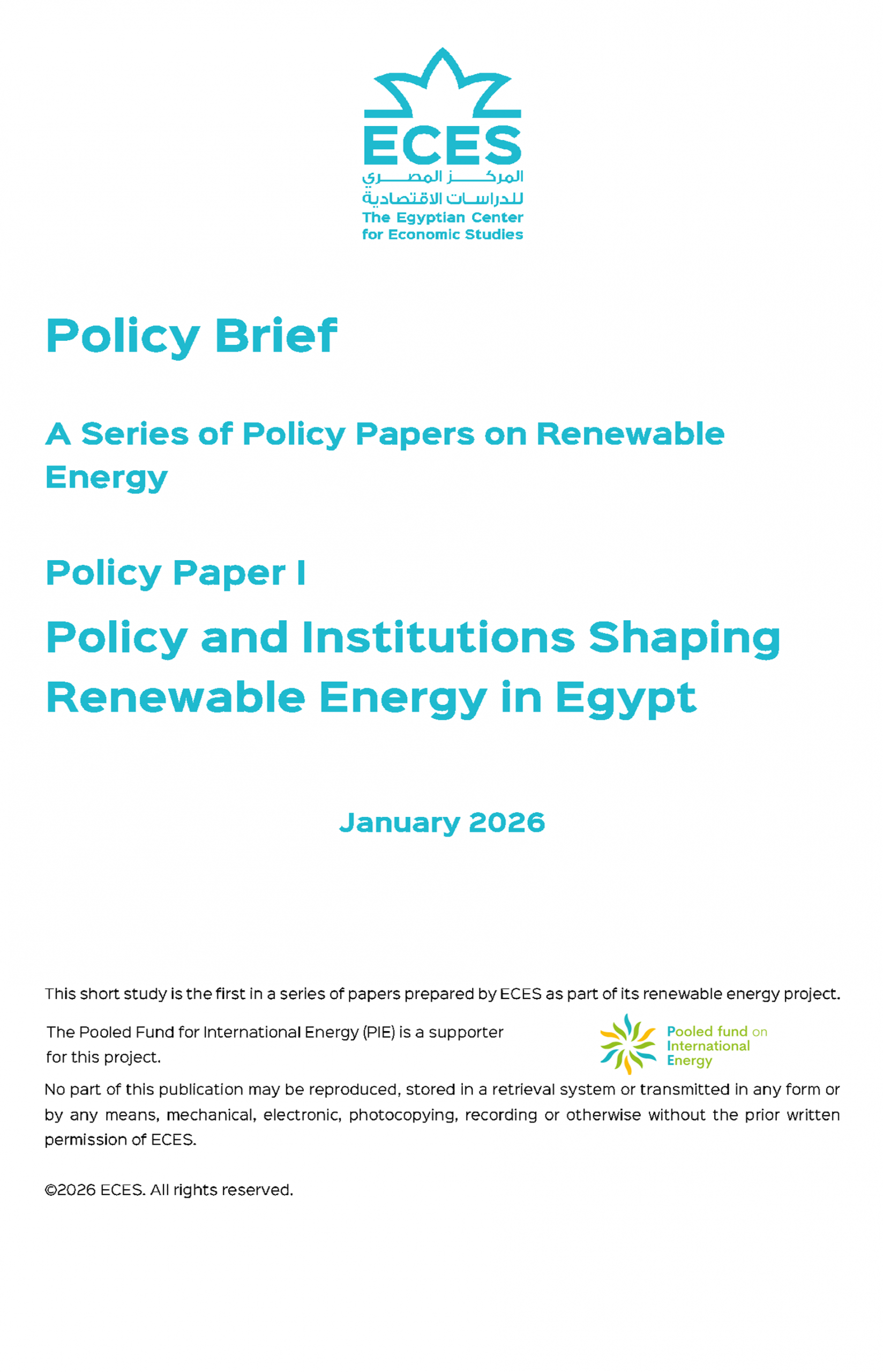 Policy Briefs A Series of Policy Papers on Renewable Energy- Policy Paper I - Policy and Institutions Shaping Renewable Energy in Egypt